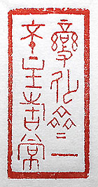 縦横・5×2.4cm 『荘子』天運篇の一節を、古璽文で刻した「變化齊一不主 故常」(變化は齊一、故常を主とせず)である。物事は其 の時其の場に應じて自由に變化すると言う事である。天 運篇には、「能く柔能く剛、變化は齊一、故常を主とせず 」と有る。己も故常を主とせざる様に心懸けては居るが、 過去の成功體験がどうしても故常を主とさせてしまう。と 言うより、何かに對して構えると言う行爲に、何處か空し さを感じる様になった。 |