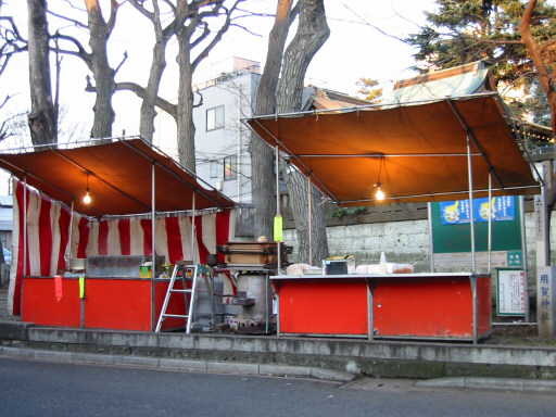 These stalls at the local jinja (shrine) should have been doing a roaring trade. There was a queue of people waiting to pray for good luck at New Year, and yet all they had on offer was just one jacket potato. The man in the green hat looked most put out.