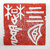 縦横・4×4cm 『史記』項羽紀の有名な一句を、甲骨文で刻した「四面 楚歌」である。周圍を全て敵に圍まれ孤立無援の状況 を表した言葉である。項羽紀には、「夜漢軍四面皆楚歌 するを聞き、項王乃ち大いに驚きて曰く、漢皆已に楚を 得たるか、是れ何ぞ楚人の多きやと」と有る。幸いな事 に己は、七十五年の人生に於いて、未だ四面楚歌の状 況に至った事が無い。或いは有ったやも知しぬが、「世 の中、捨てる~有れば、拾う~有りだ」と、樂天的に對應 していた。但し三面楚歌の状況は多々有った。 |