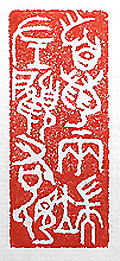 縦横・5×2.1cm 『史記』魏其武安侯傳と曹植の「與呉季重書」の各々の 一句を並べて、金文で刻した「首鼠兩端左顧右視」(首 鼠は兩端し左顧右視す)である。形勢を見て迷い躊躇い 、日和見的で何も決められない様子を、表した言葉であ る。魏其武安侯傳には、「長孺と共に一老禿翁、何爲れ ぞ首鼠兩端するや」と有り、與呉季重書には、「左顧右 眄(視)するや、人無きが若しと謂ふは、豈に吾子の壯 志に非ずや」と有る。所謂兩端を持して洞ヶ峠を決め込 む事である。裏ではハッキリと過激なまでに意見を言う くせに、いざ公的會議となると左顧右眄し首鼠兩端の態 度を取る人を、多く見かける。 |