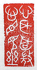 縦横・5×2.4cm 金文で刻した、「心耳聽微心目見幽」(心耳もて微を聽き 心目もて幽を見る)である。實際の耳で聞き目で見るもの は得てして己の心を惑わし易い、故に心の耳目で見聞す れば、視得なかったものが見え、聞こえなかったものが聞 こえて來る。何が見聞出來るかは、一に心の有り様に係 っていれば、心を磨き研ぎ澄ます事が重要であろう。など と尤もらしい事を言ったのは、己自身が心耳も心目も持て ないからに他ならない。 |
